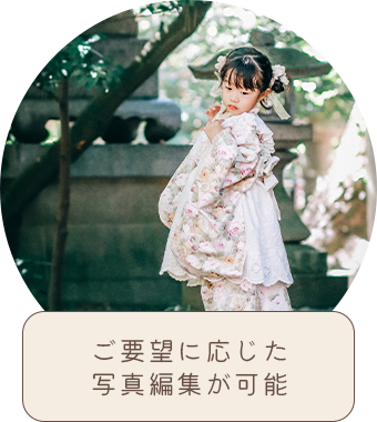 こちらも時間やご予算に応じた3つのプランをご用意しております。お子さまの晴れ舞台を祝い、今後の長寿と幸福を願いながら、撮影させていただきます。