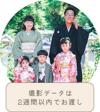 撮影データは2週間以内の納品が可能です。お子さまの写真をすぐ手元にお届けいたします。